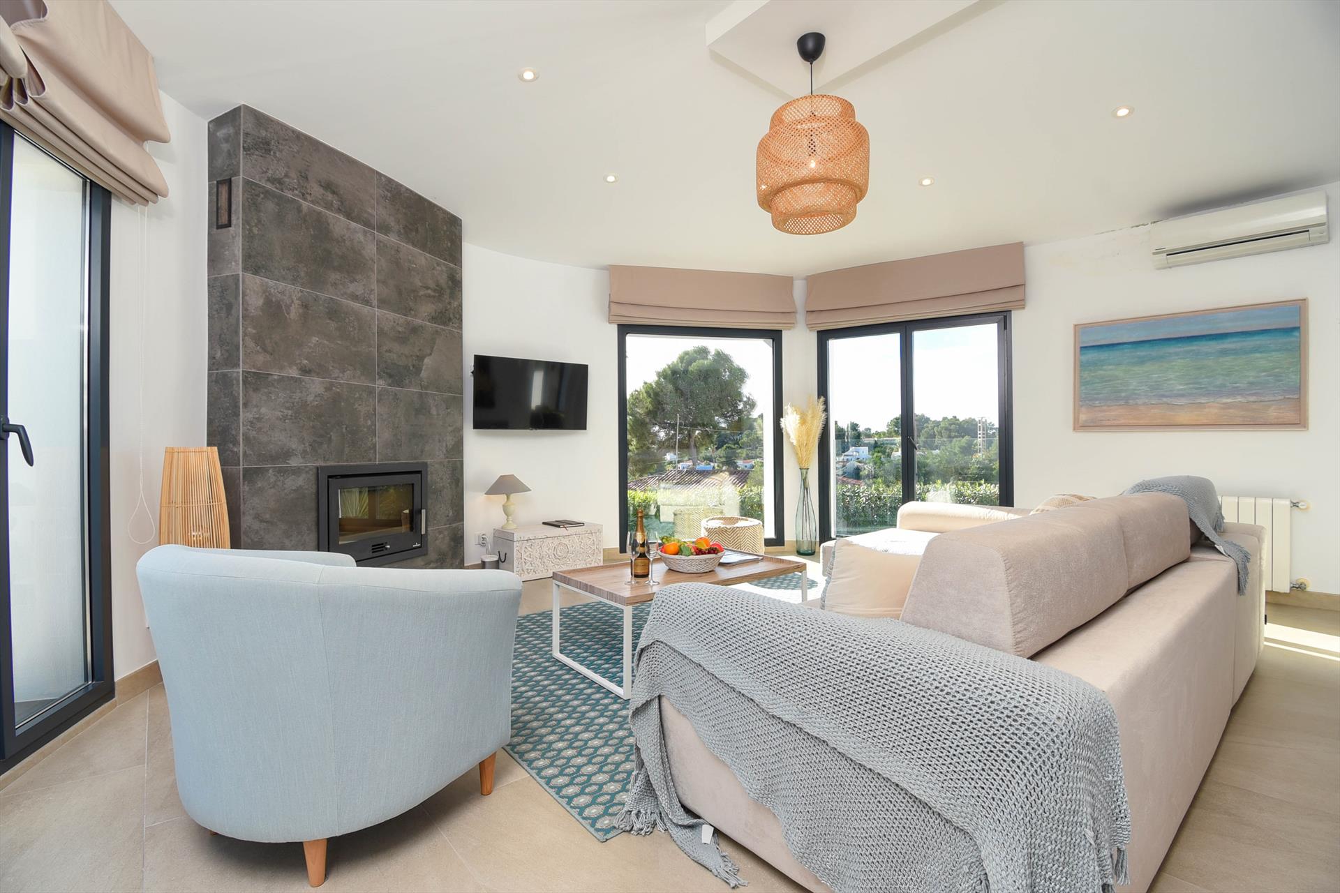 Moderna y agradable villa con piscina privada en Benissa, Costa Blanca, España para 6 personas. La casa está situada en una zona residencial de playa, a 4 km de la playa Cala Baladrar y a 4 km de Moraira.