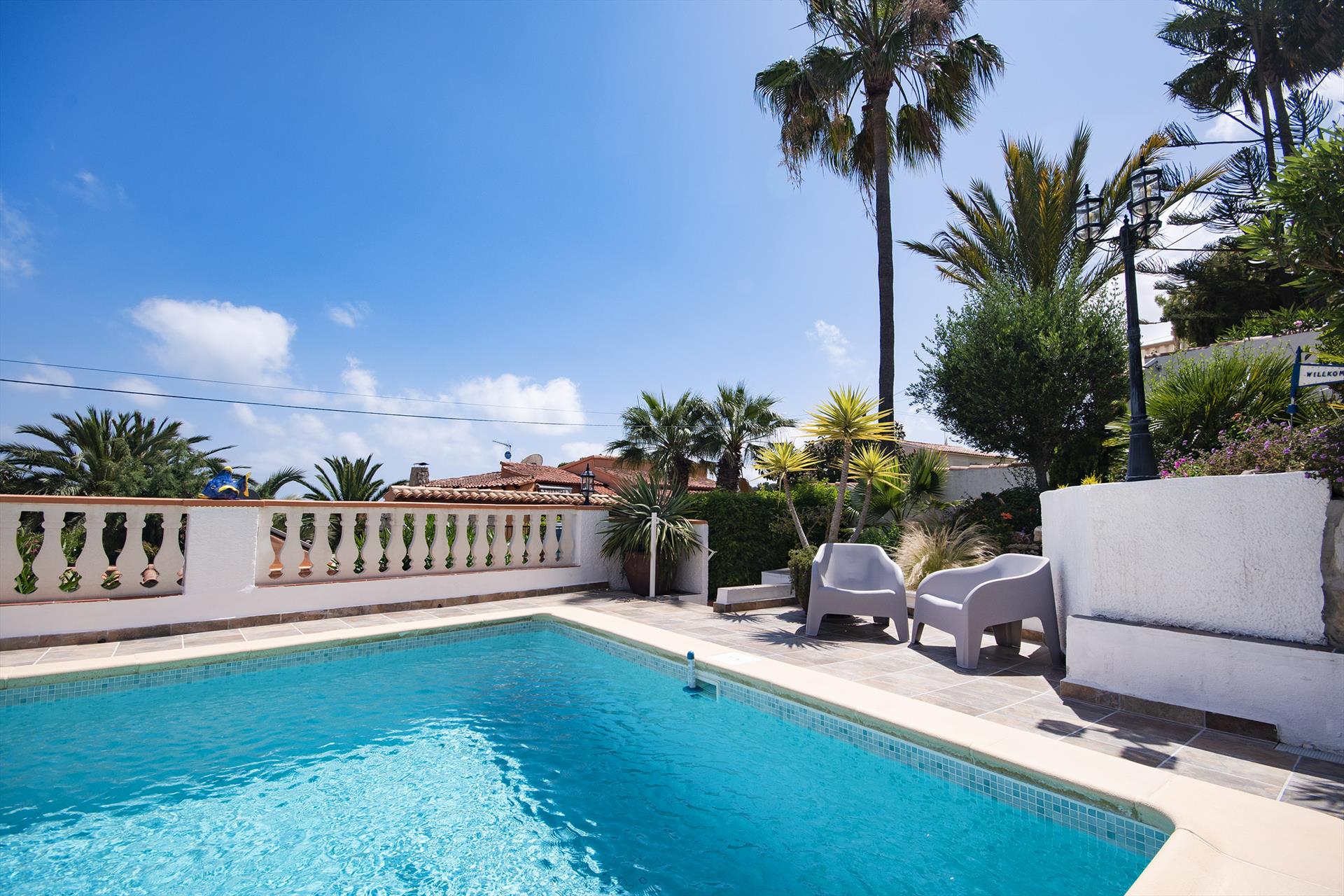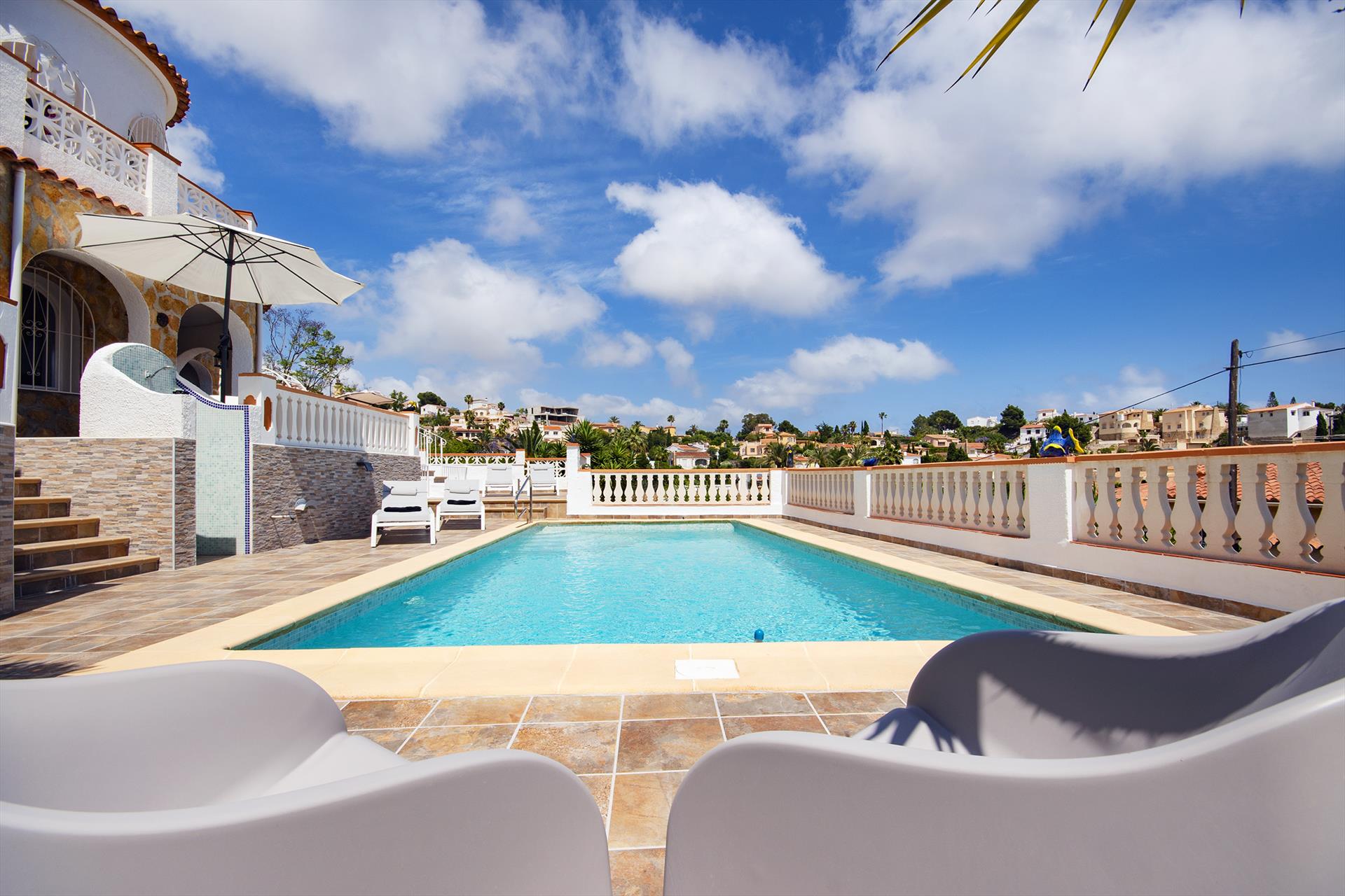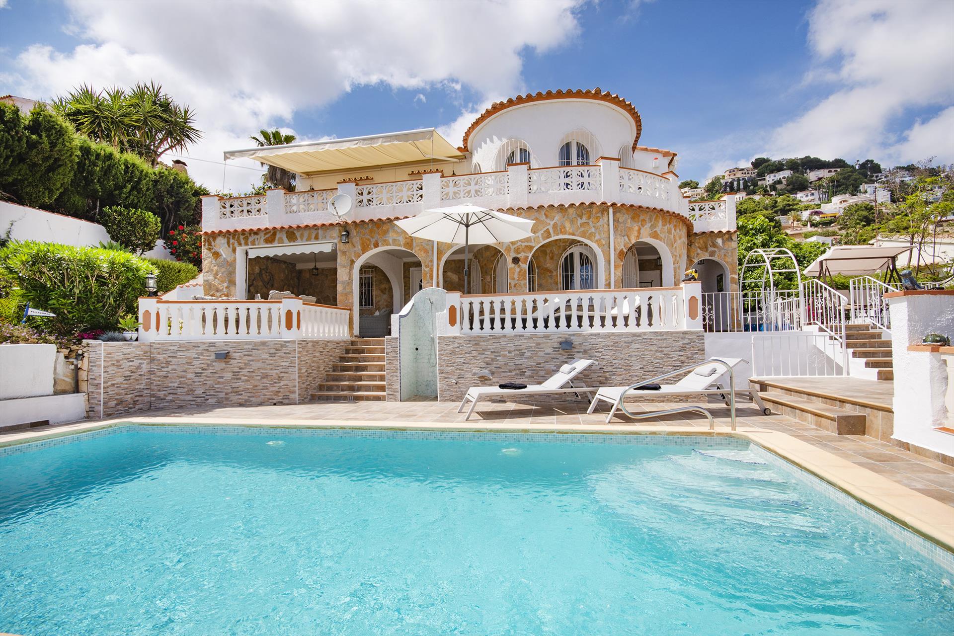 Maravillosa y alegre villa con piscina privada en Benissa, Costa Blanca, España, para 4 personas. La casa se encuentra en una zona costera, montañosa y residencial, a 2 km de la playa Cala Baladrar y a 5 km de Moraira.