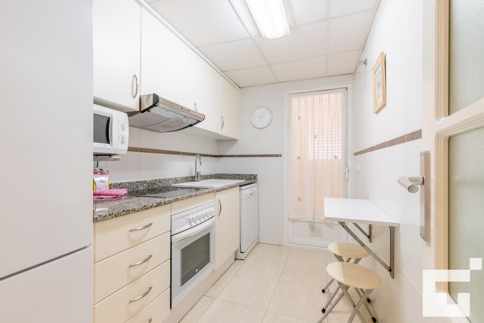 • cocina con placa eléctrica, horno eléctrico, microondas, lavavajillas, refrigerador, congelador, cafetera, batidora, tostadora y extractor de jugo