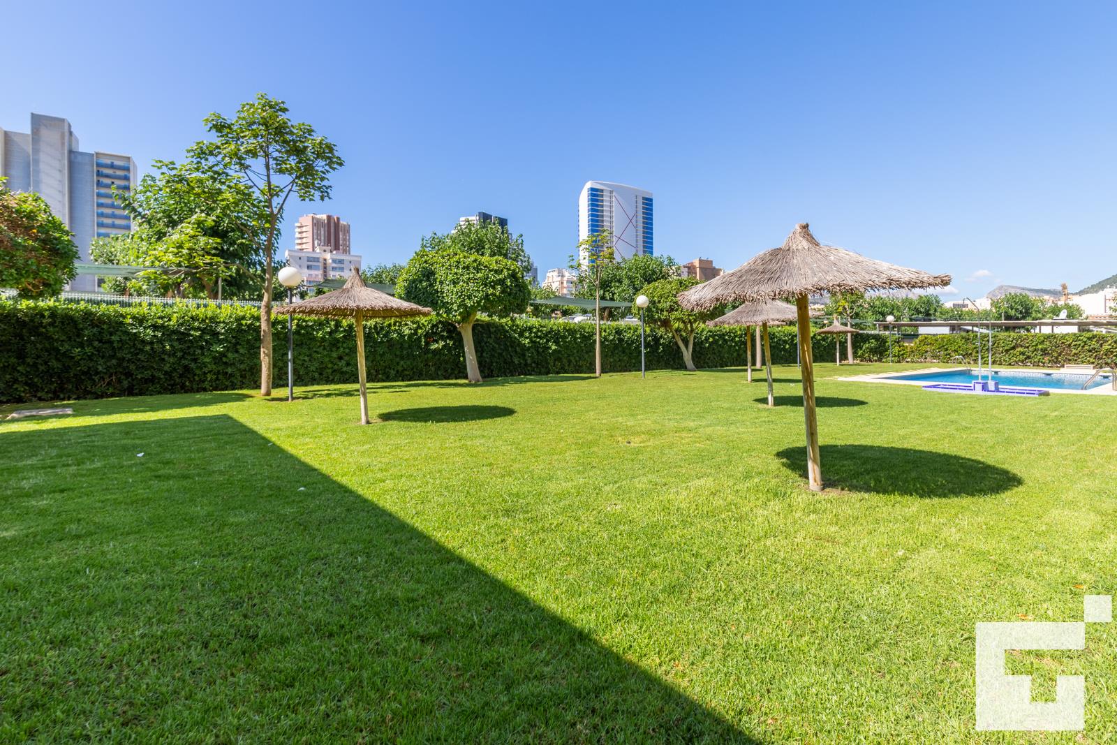 El apartamento cuenta con 3 dormitorios y 2 baños. El alojamiento ofrece un jardín con césped, un jardín comunitario con césped y hermosas vistas de la piscina y el jardín. Su comodidad y la proximidad a la playa, lugares para ir de compras, actividades deportivas y lugares de ocio hacen de este un excelente apartamento para disfrutar de sus vacaciones en España con familiares o amigos.