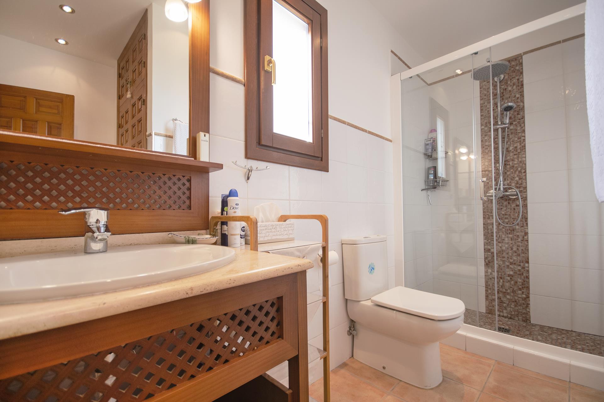 • baño en suite con lavabo individual, ducha, inodoro y secador de pelo