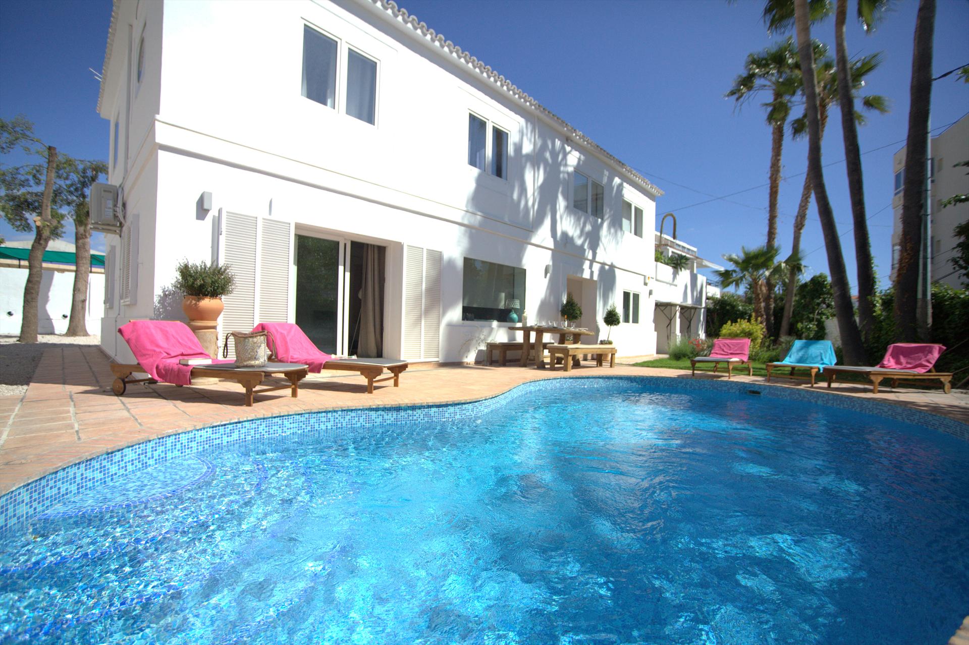 La casa de vacaciones cuenta con 4 dormitorios y 3 baños, distribuidos en 2 niveles. El alojamiento ofrece un hermoso jardín con césped y árboles, así como una encantadora piscina. Su confort y la proximidad a la playa, lugares de compras, actividades deportivas, instalaciones de entretenimiento, vida nocturna, lugares de interés y cultura hacen de esta una espléndida casa de vacaciones para disfrutar de sus días en España con familia o amigos.