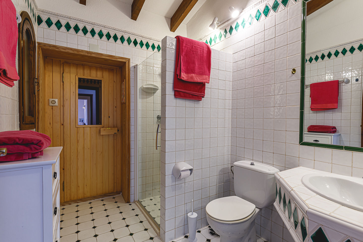• baño con lavabo individual, ducha, inodoro y secador de pelo