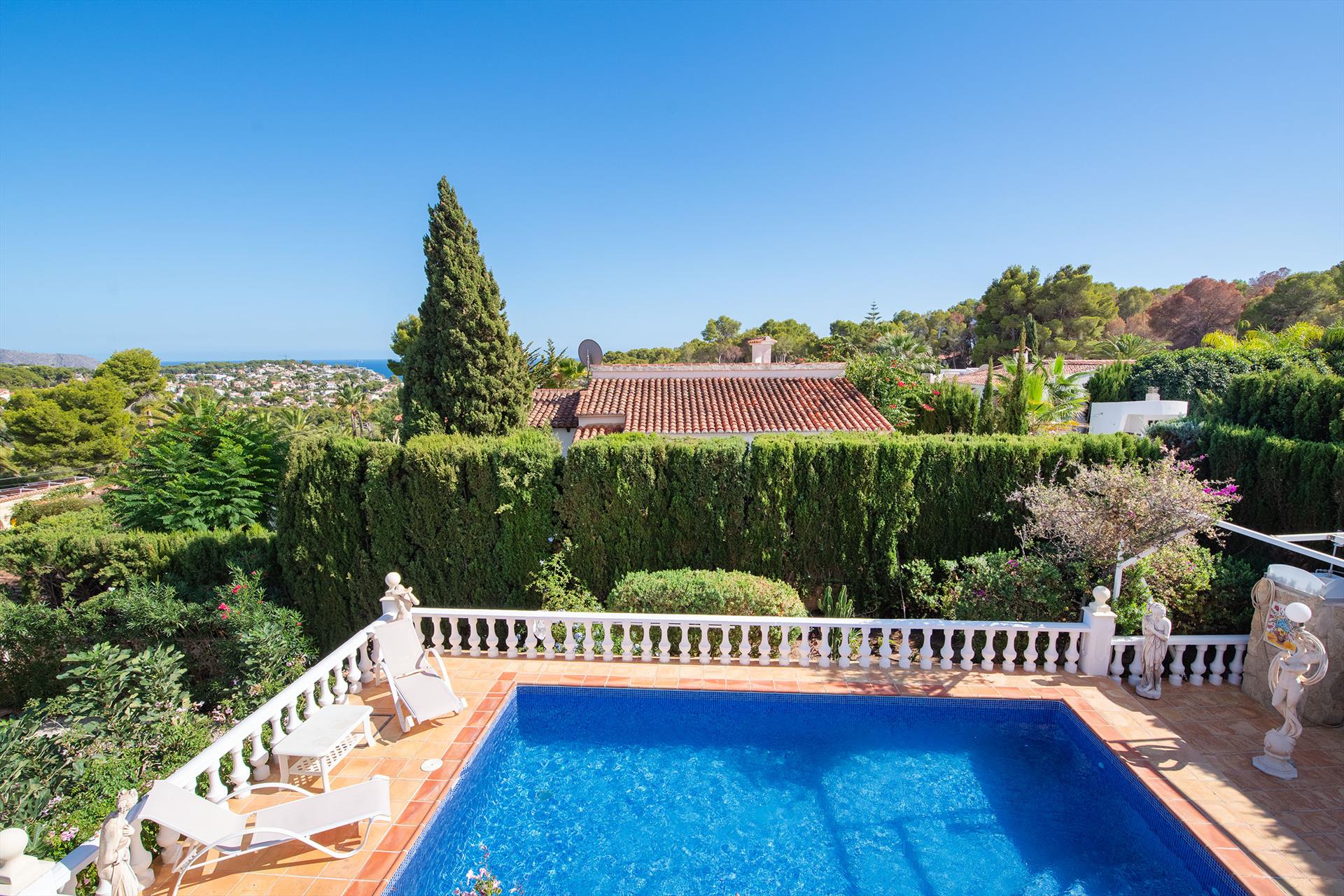 Villa clásica y romántica en Benissa, Costa Blanca, España, con piscina privada para 4 personas. La casa está situada en una zona costera, montañosa y residencial, a 2 km de la playa Cala La Llobella y a 5 km de Calpe.