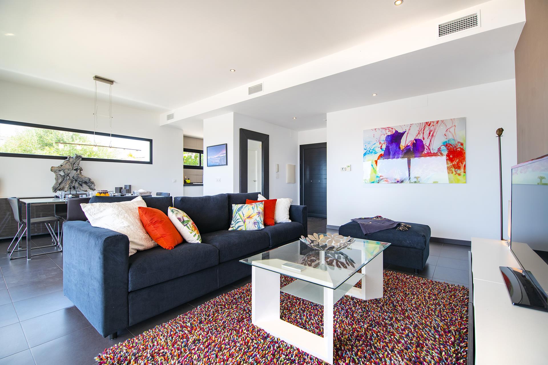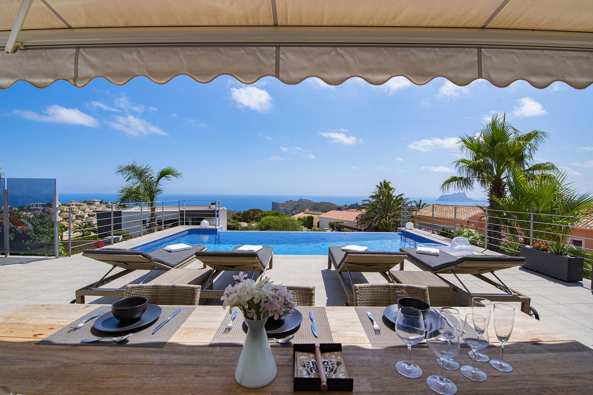 Moderna y cómoda villa con piscina privada en Benitachell, Costa Blanca, España, para 6 personas. La casa está situada en una zona costera y residencial, a 3 km de la playa Cala Moraig y a 5 km de Moraira.