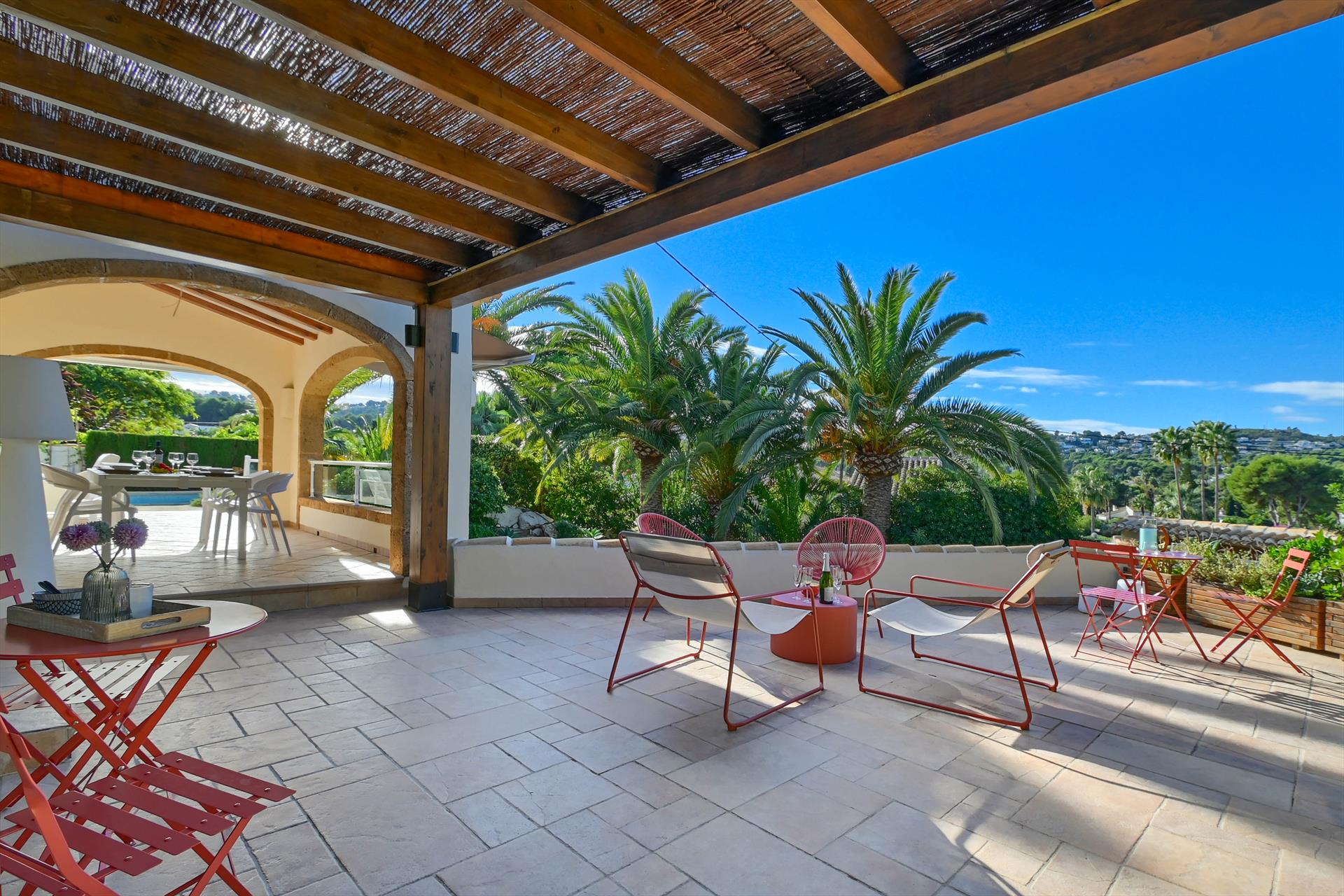 Hermosa y cómoda villa con piscina privada en Jávea, Costa Blanca, España para 6 personas. La casa está situada en una zona residencial de playa y a 2 km de la playa El Arenal, Jávea.