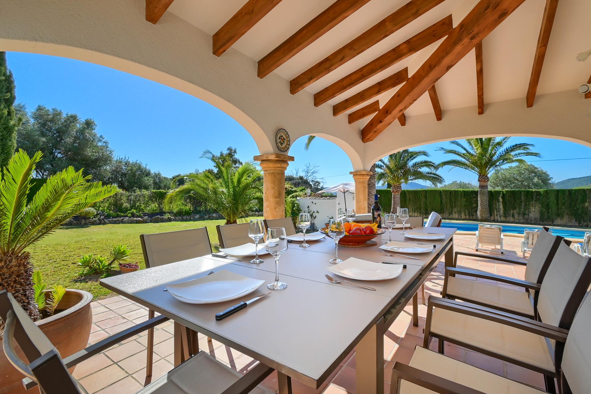 Maravillosa y clásica villa en Xàbia, Costa Blanca, España con piscina privada para 8 personas. La casa está situada en una zona residencial de playa y a 4 km de la playa La Grava, Xàbia.
