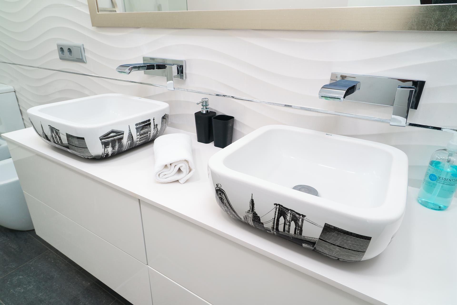• baño en suite con doble lavabo, bañera, ducha, bidé y wc