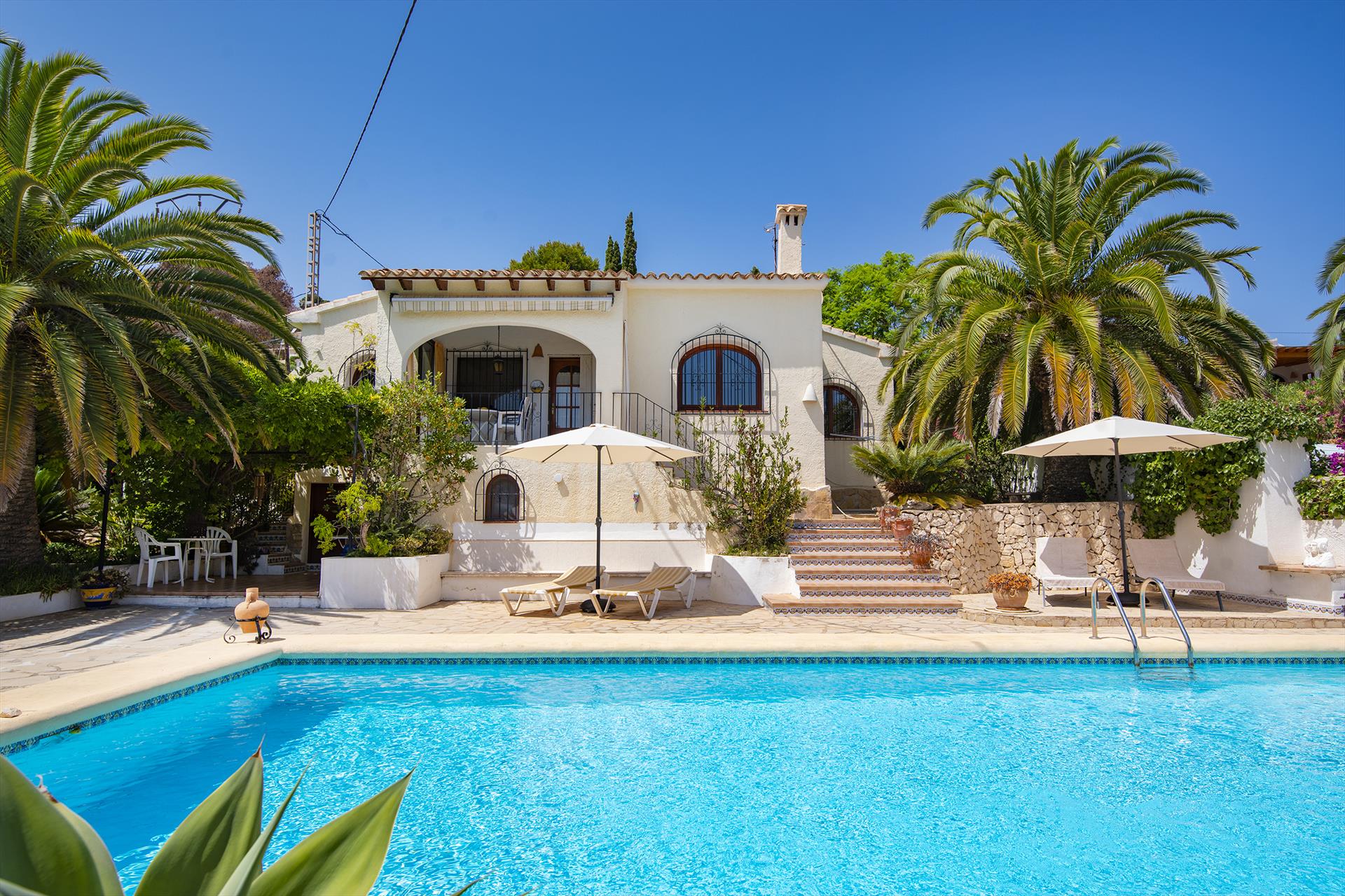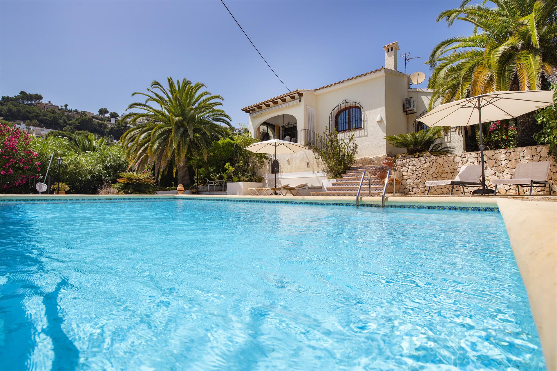 Maravillosa villa en Moraira, Costa Blanca, España, con piscina privada para 4 personas. La casa está situada en una zona costera y residencial, a 4 km o 8 minutos en coche de la playa de Moraira y a 4 km o 3.2 km de Moraira.