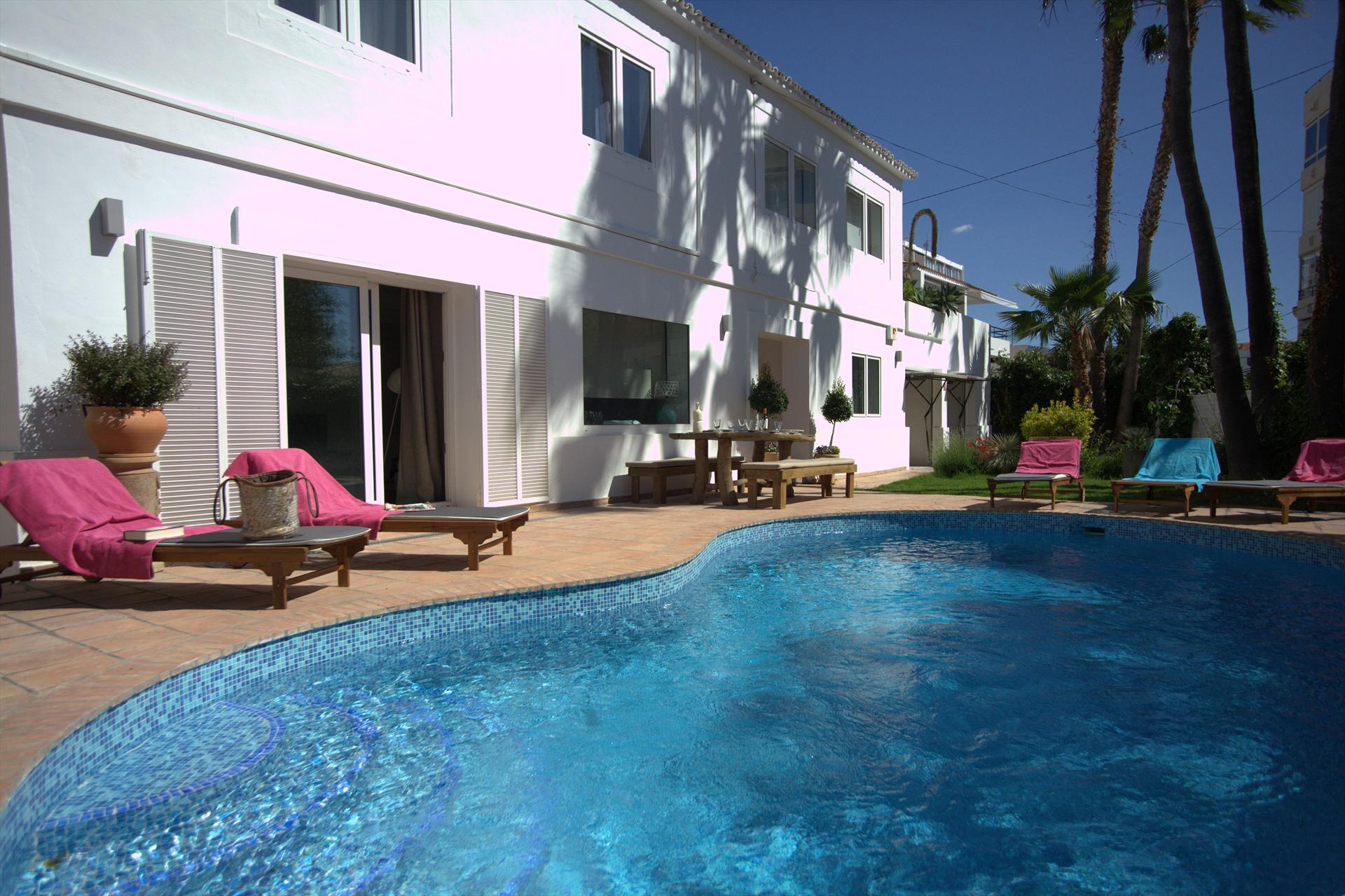 La casa vacanze dispone di 4 camere da letto e 3 bagni, distribuiti su 2 livelli. L'alloggio offre un bellissimo giardino con prato, alberi e una deliziosa piscina. Il suo comfort e la vicinanza alla spiaggia, ai negozi, alle attività sportive, alle strutture di intrattenimento, alla vita notturna, ai luoghi d'interesse e alla cultura rendono questa casa vacanze un luogo splendido per trascorrere le proprie vacanze in Spagna con familiari o amici.
