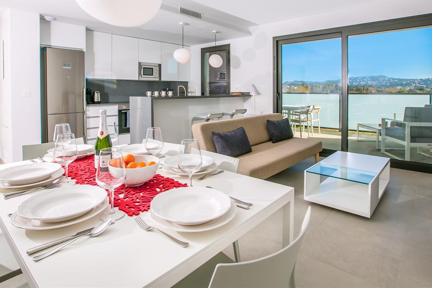 L'appartamento dispone di 2 camere da letto e 2 bagni. L'alloggio offre privacy, un giardino comune con erba, ghiaia e alberi, e una vista sulla valle e sulle montagne. Il comfort e la vicinanza alla spiaggia, ai negozi, alle attività sportive, alle strutture di intrattenimento, ai luoghi di svago, alle attrazioni e alla cultura rendono questo appartamento una scelta eccellente per trascorrere le vostre vacanze in Spagna con la famiglia o gli amici.