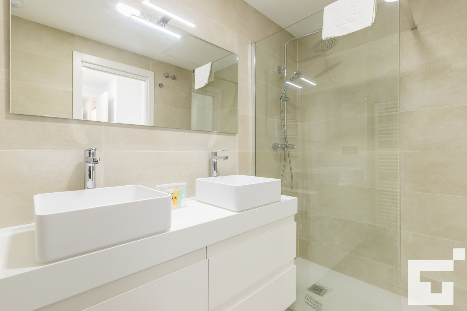 • Eigenes Badezimmer mit Doppelwaschbecken, Dusche und Toilette