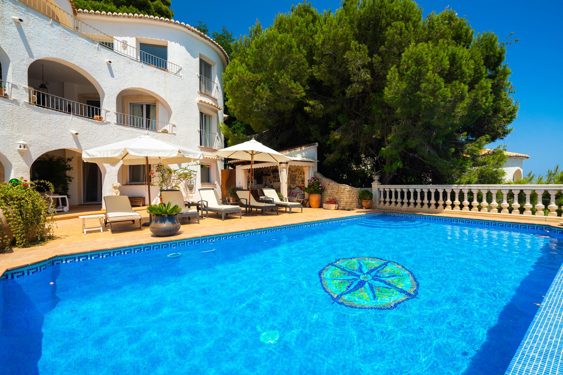 Große und klassische Villa mit privatem Pool in Jávea, Costa Blanca, Spanien für 12 Personen. Das Haus befindet sich in einem Wohngebiet am Strand, 100 m vom Playa Ambolo Strand und 50 m vom Mittelmeer, Jávea, entfernt.