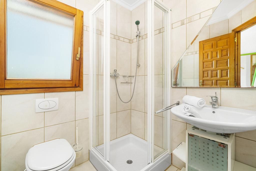 • Badezimmer mit Waschbecken, Dusche und WC