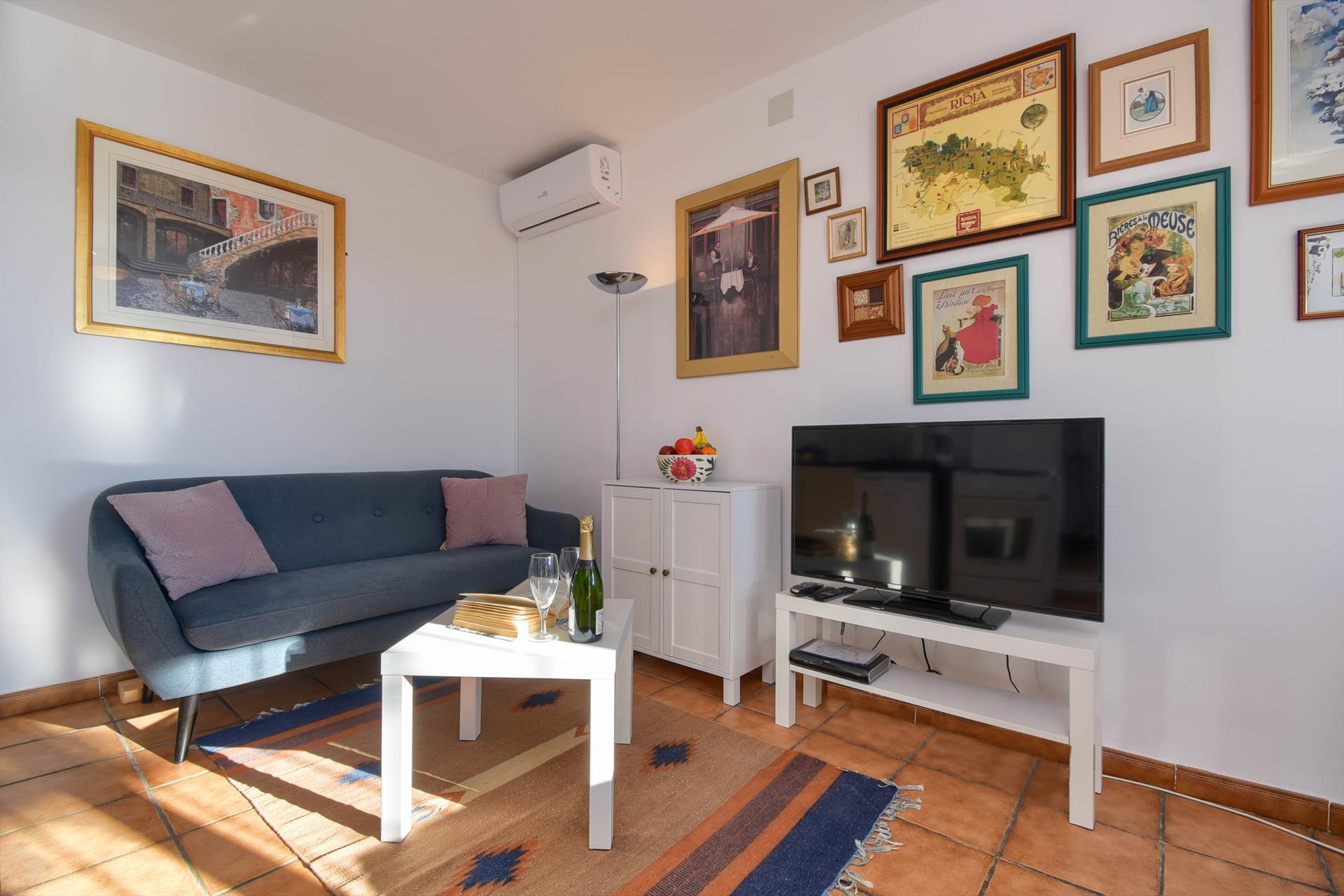 • Wohn-/Esszimmer mit Klimaanlage, Fernseher, DVD-Player und Deckenventilator