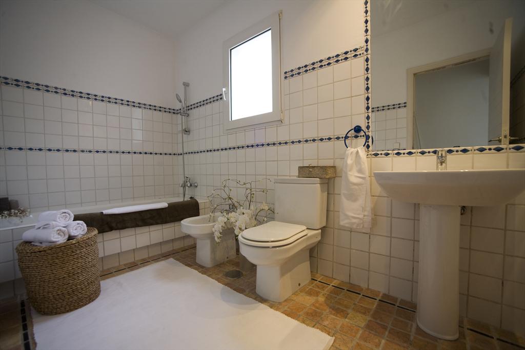 • bathroom with single washbasin, bath, shower, bidet, and toilet
