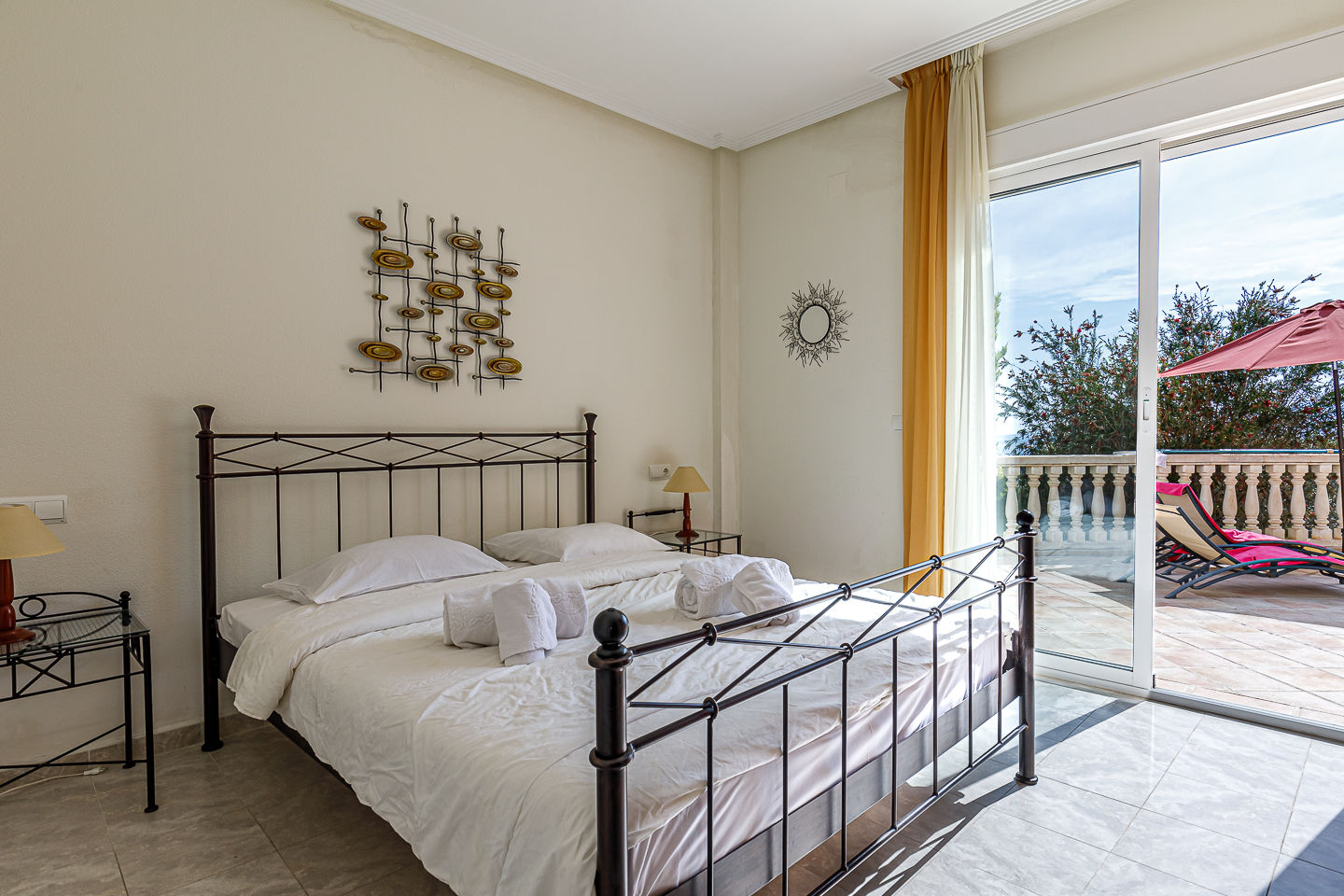 The villa has 3 bedrooms, 2 bathrooms, and 1 guest toilet, spread over 2 levels. The accommodation offers a garden with gravel and trees, a beautiful pool, and wonderful views of the bay, the sea, the valley, and the mountains. Its comfort and the proximity to the beach, sports activities, and places to go out make this a fine villa to spend your holidays in Spain with family or friends.