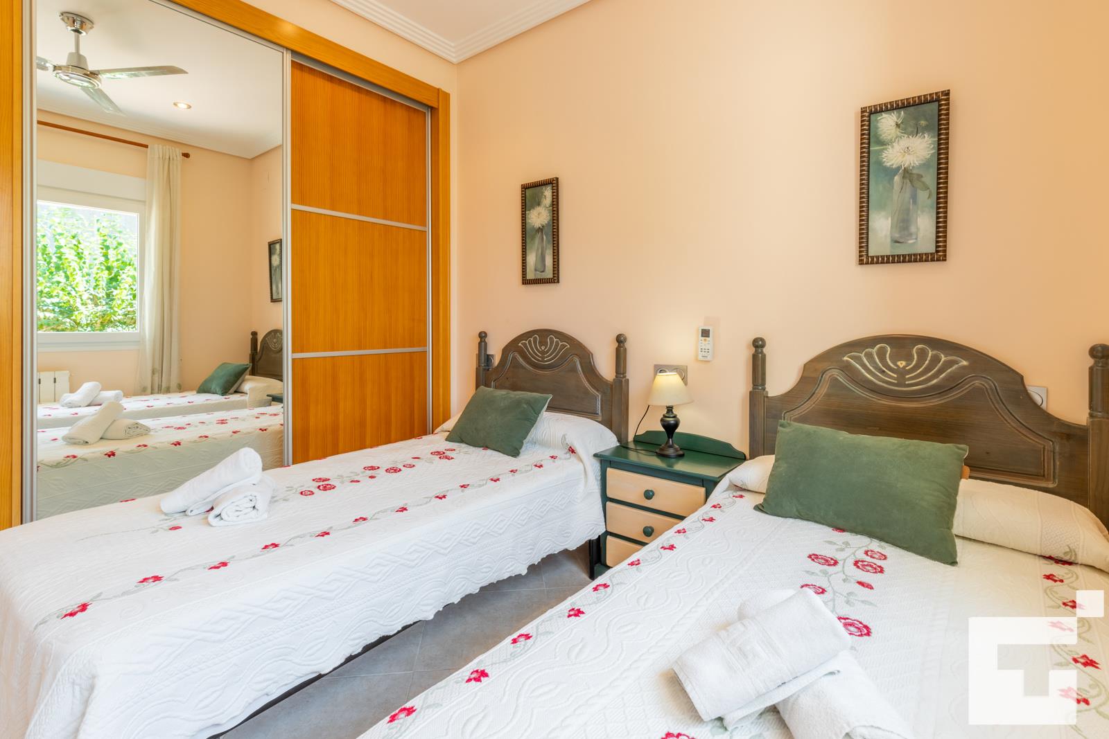 • 2 bedrooms with air conditioning, each with 2 single beds