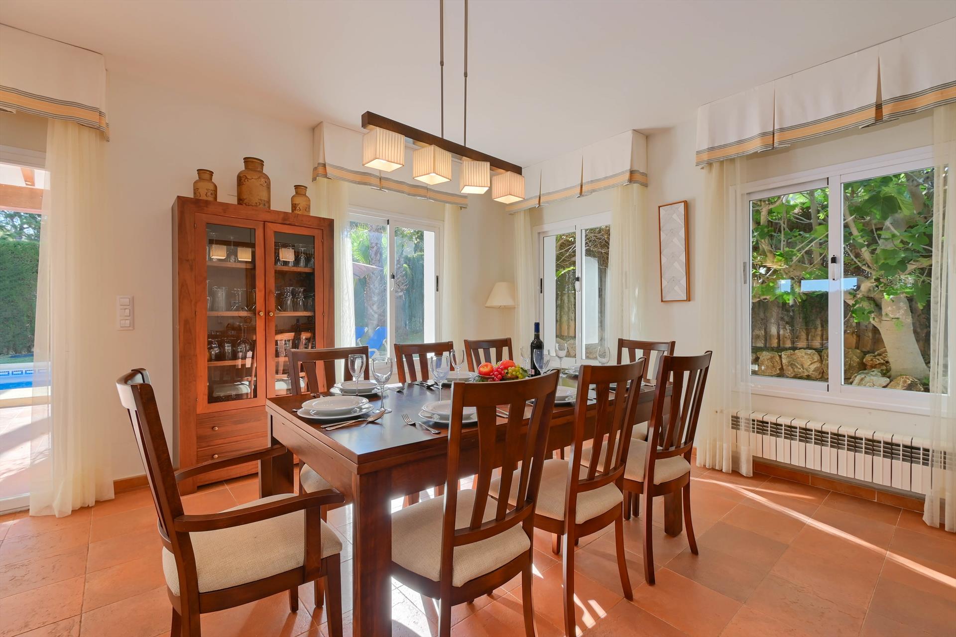 The villa has 3 bedrooms and 3 bathrooms, spread over 2 levels. The accommodation offers a lot of privacy, a beautiful lawned garden with gravel and trees, and a wonderful pool. Its comfort and the vicinity of the beach, places to shop, sports activities, entertainment facilities, places to go out, sights and culture make this an ideal villa to spend your holidays in Spain with family or friends and even your pets.