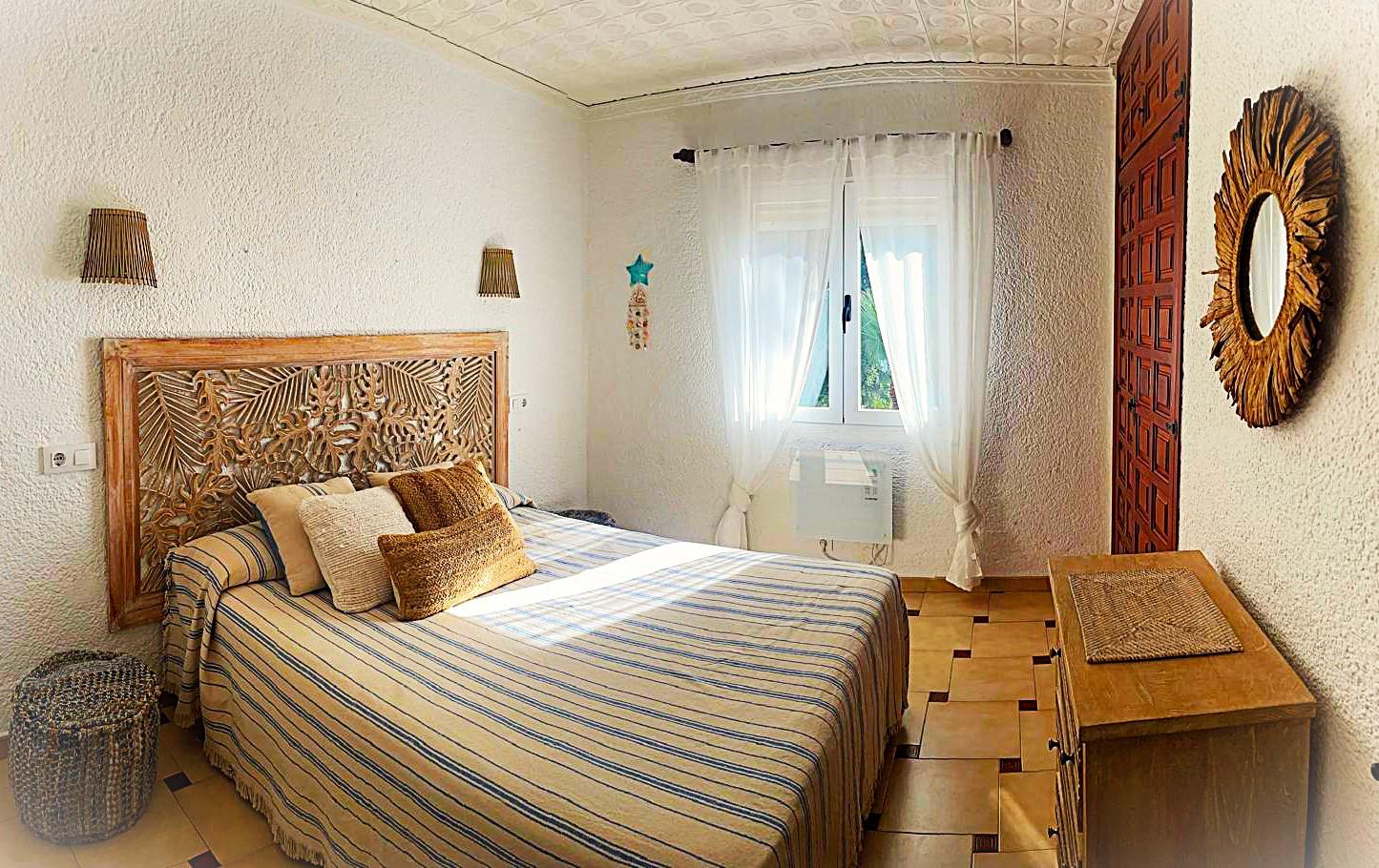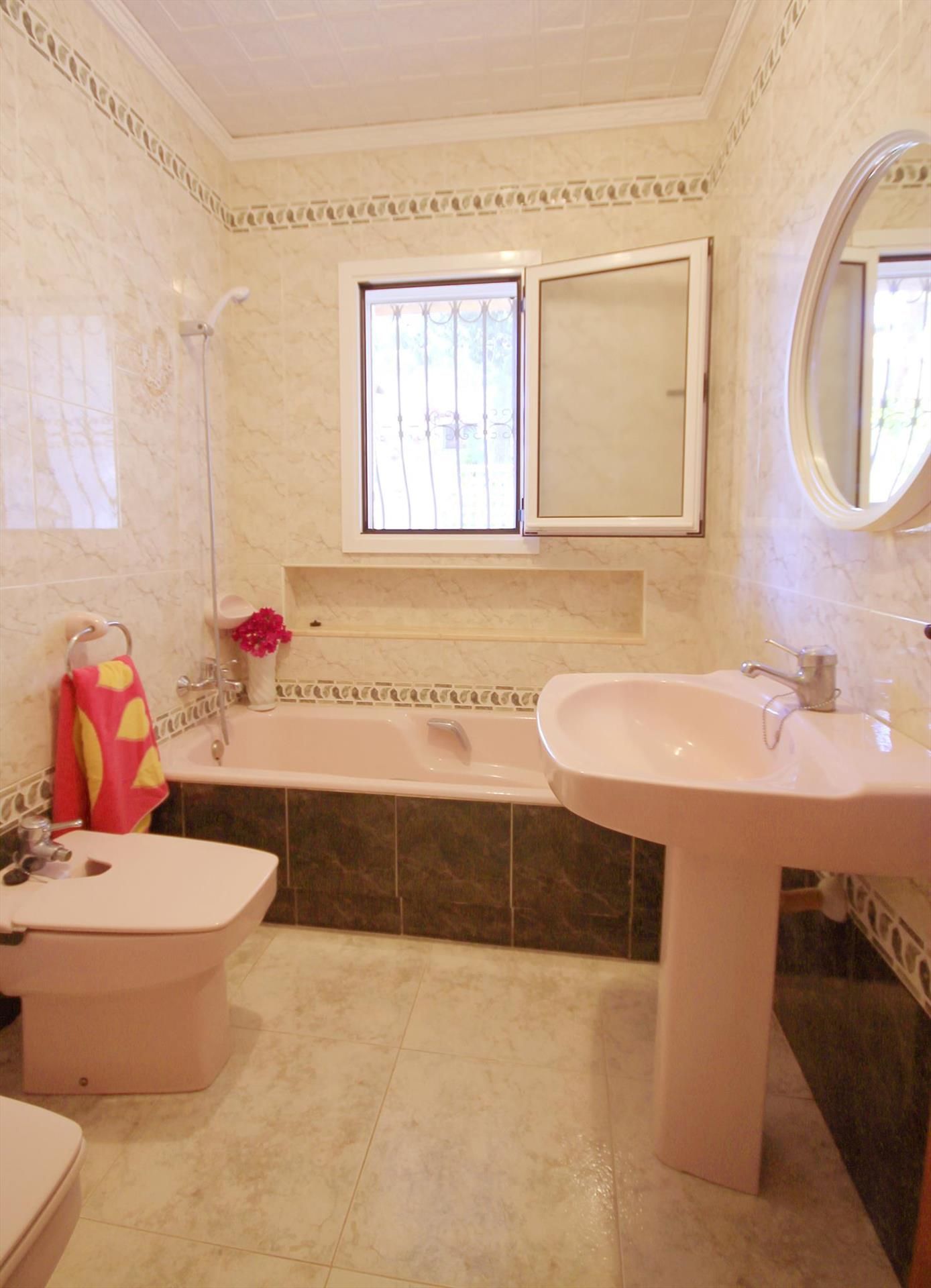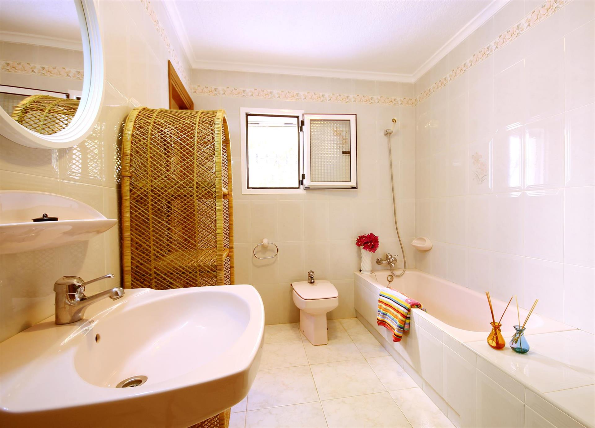 The villa has 4 bedrooms and 3 bathrooms, spread over 2 levels. The accommodation offers privacy, a wonderful lawned garden with gravel and trees, a wonderful pool and wonderful views of the sea. Its comfort and the proximity of the beach make this a fine villa to spend your holidays in Spain with family or friends and even your pets.
