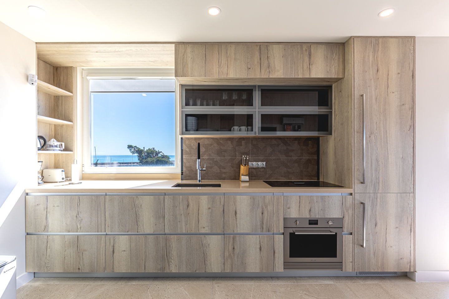 • cuisine ouverte avec plaque à induction, four électrique, micro-ondes, lave-vaisselle, réfrigérateur-congélateur, machine à café, bouilloire électrique, mixeur, grille-pain et extracteur de jus
