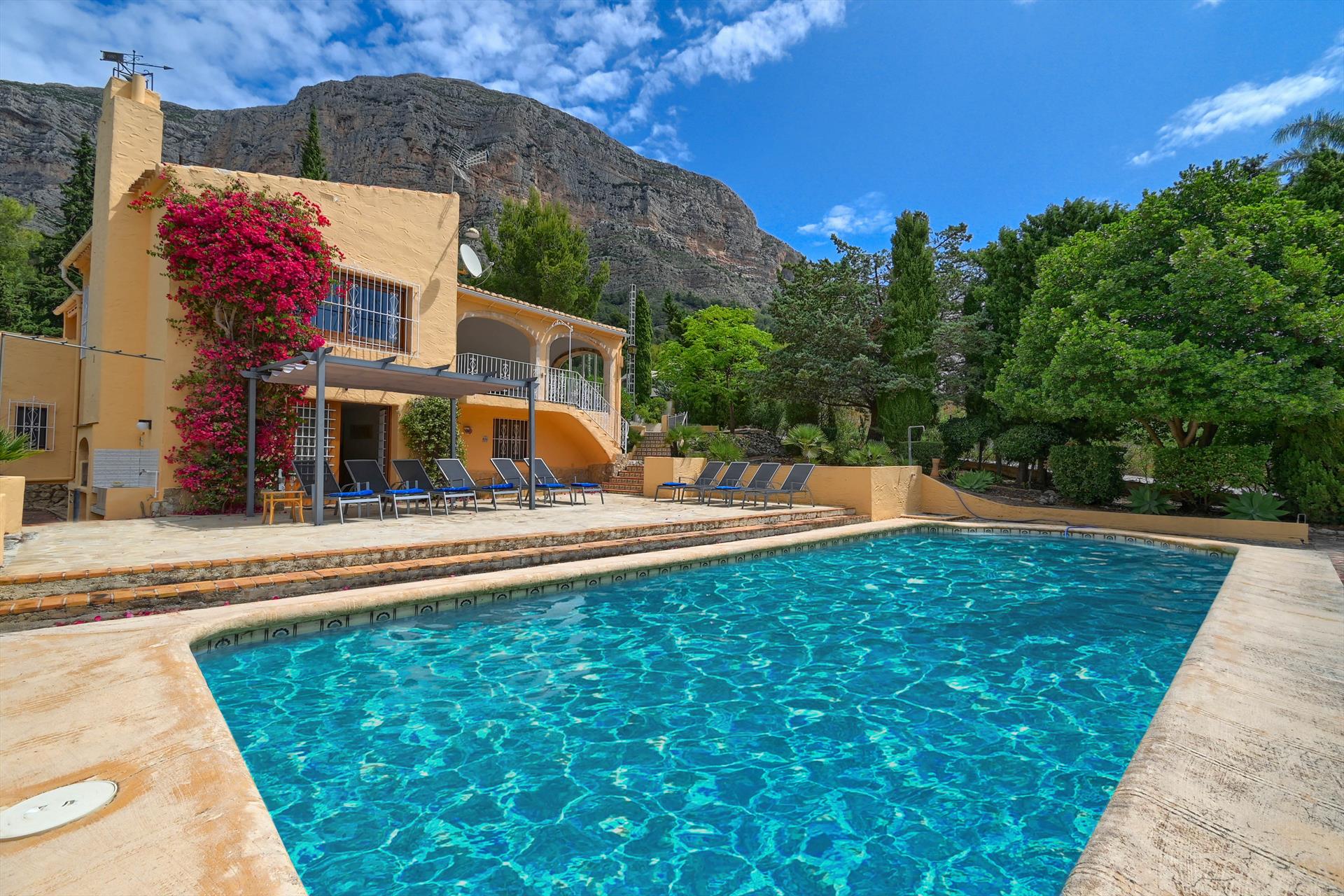 Maison classique et accueillante à Jávea, Costa Blanca, Espagne avec piscine privée pour 10 personnes. La maison est située dans un quartier résidentiel à proximité de la plage, à 4 km de la plage de La Grava, Jávea.