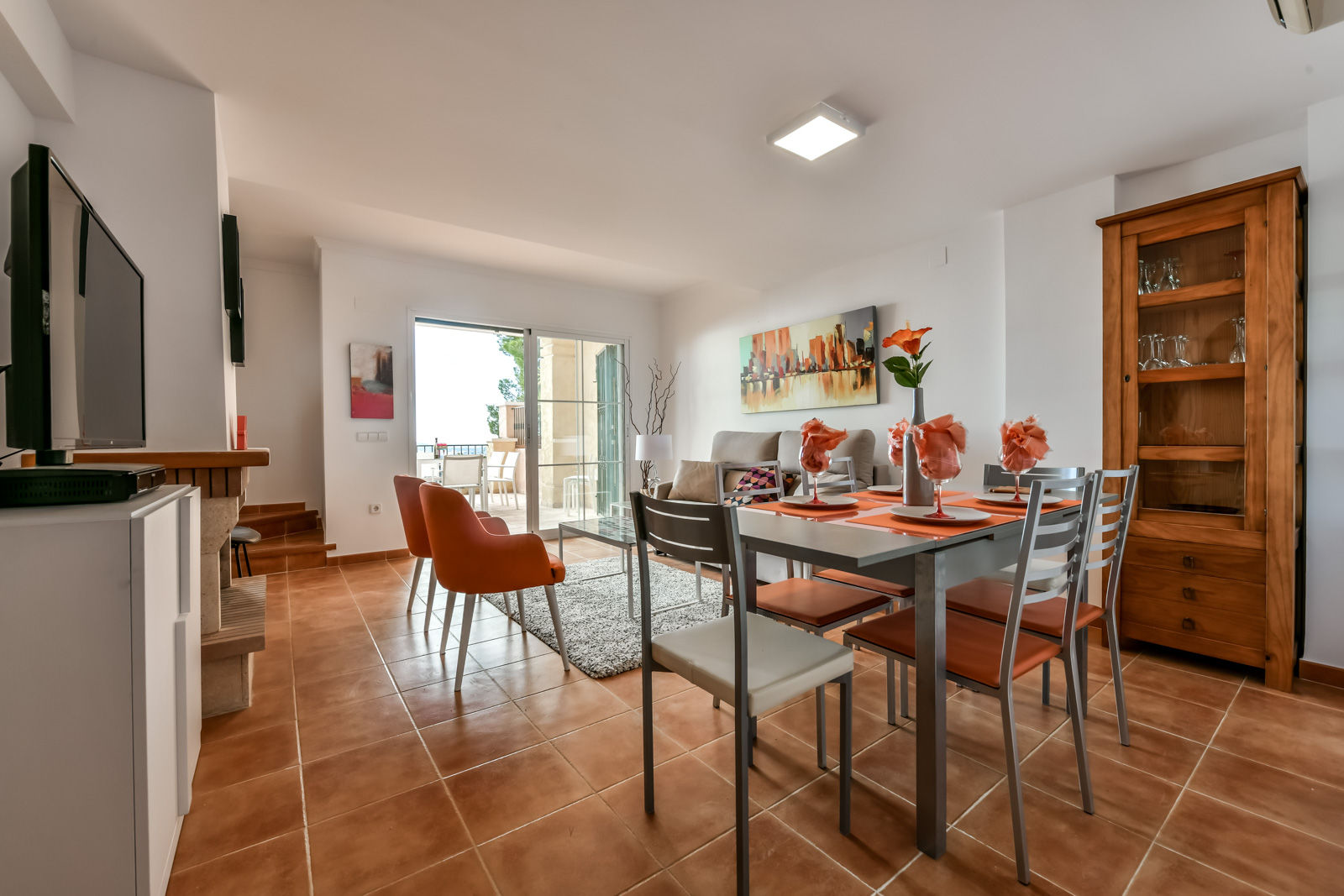 • woon/eetkamer met airconditioning, televisie en slaapbank