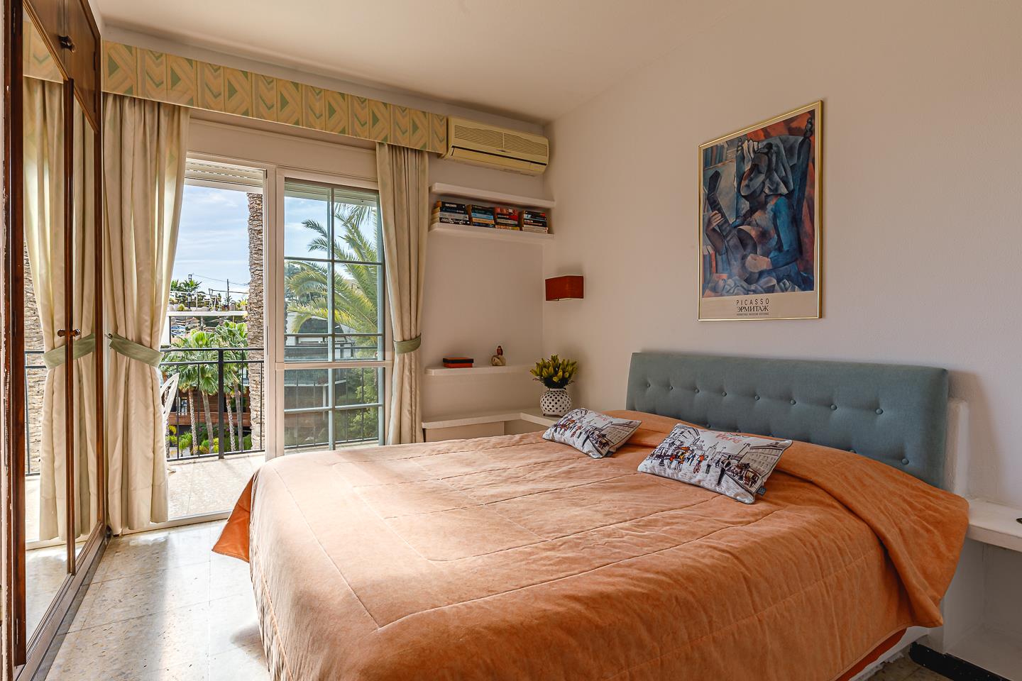 • slaapkamer met airconditioning en een tweepersoonsbed