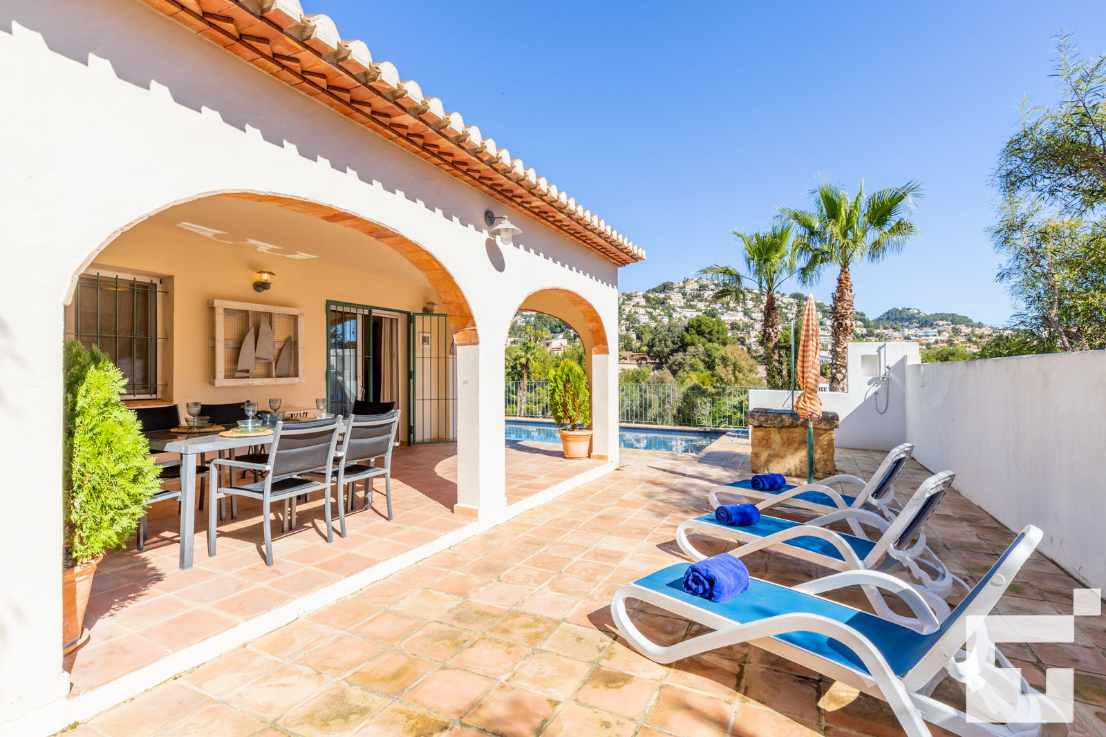 Mooie en comfortabele villa in Benissa, Costa Blanca, Spanje met een privézwembad voor 6 personen. Het huis is gelegen in een woonwijk en ligt op 3 km van het Advocat- en Baladrarstrand.
