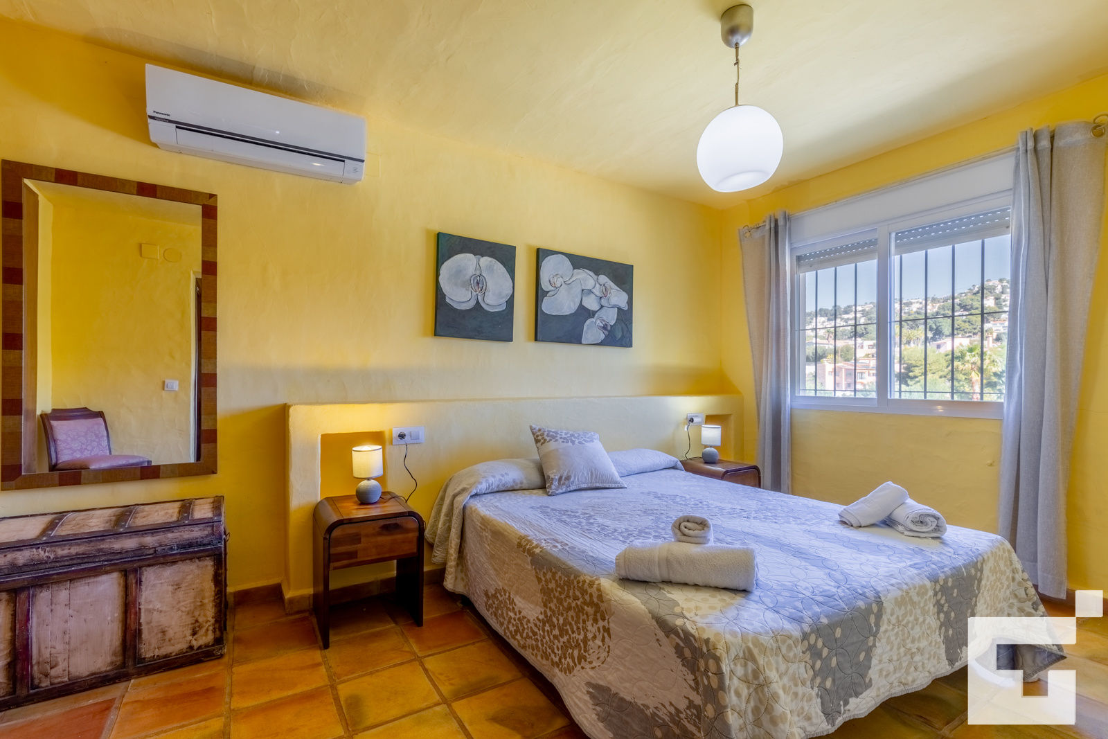 • slaapkamer met airconditioning en tweepersoonsbed