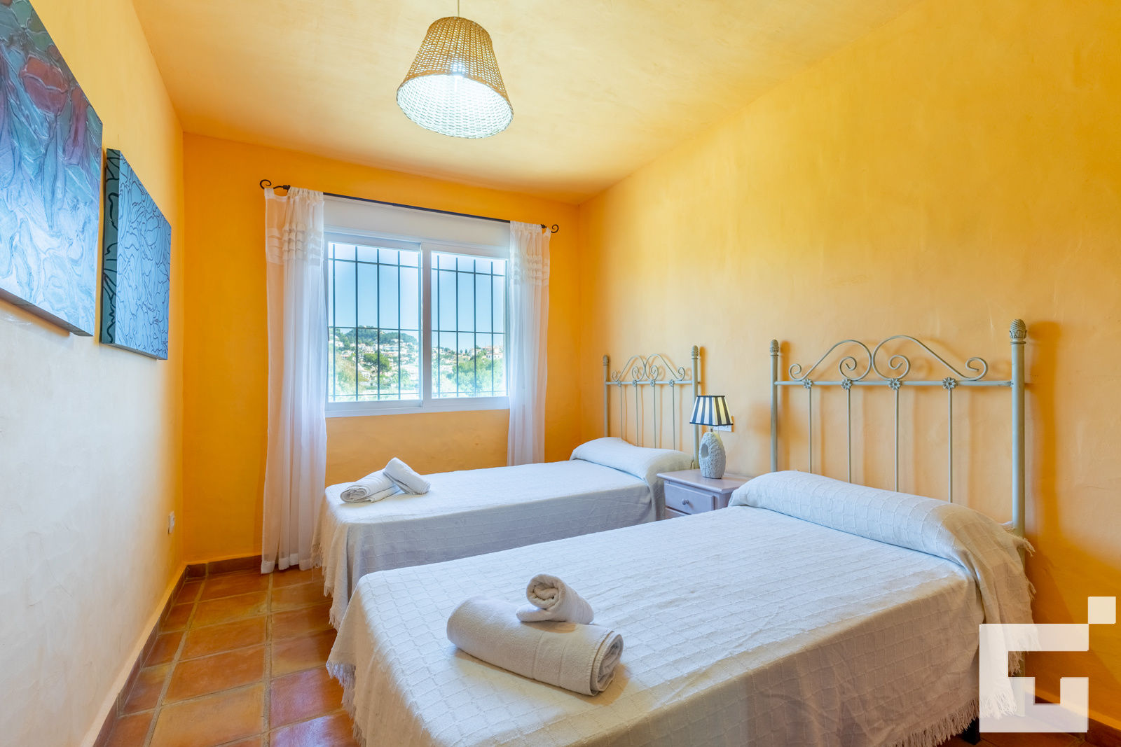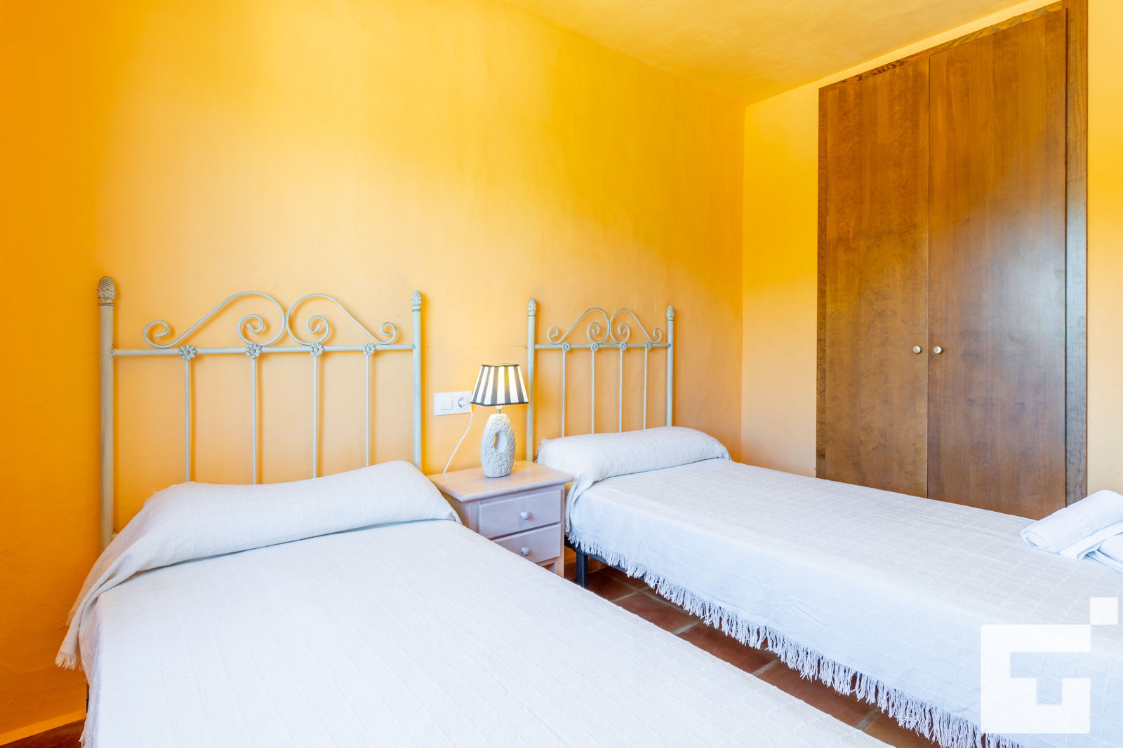 • 2 slaapkamers met airconditioning, elk met 2 eenpersoonsbedden